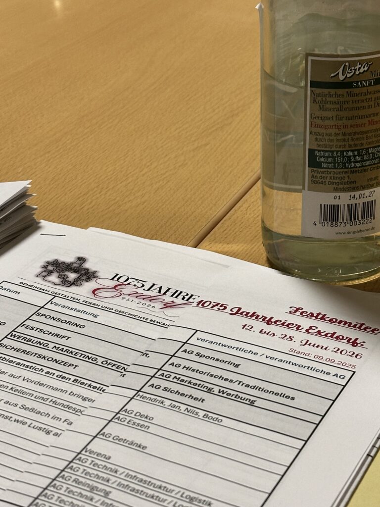 Am vergangenen Donnerstag, den 26.02.2026, traf sich das Festkomitee „1075-Jahre-Exdorf“ zu seiner 16. Versammlung, um die Jahrfeier im Juni diesen Jahres vorzubereiten.