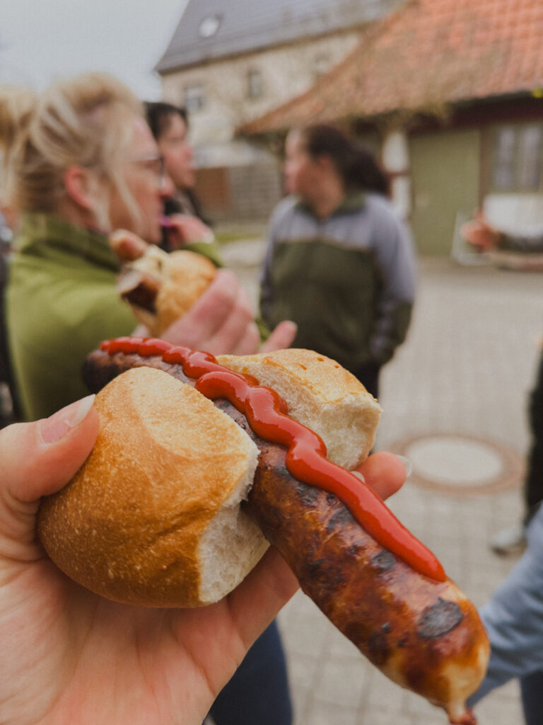 …und zu guter letzt gab es für alle eine Bratwurst im Kindergartenhof – mit musikalischer Umrahmung aus dem Dorffunk. 🙂
